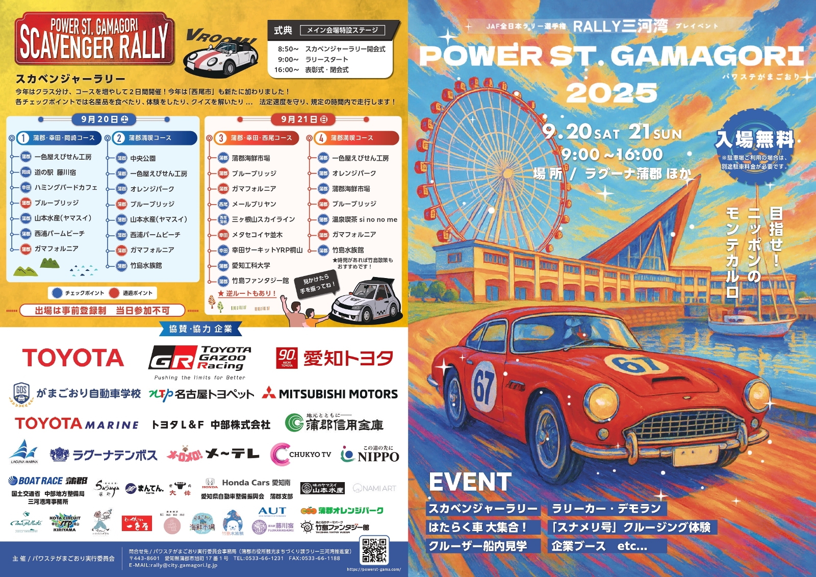 | 主催者 | JAF加盟クラブ モンテ オート スポーツクラブ 協力:蒲郡市・パワステがまごおり実行委員会 |